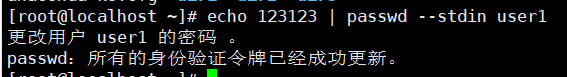 passwd 用户名(若不输入用户名,更新当前所登陆密码),连续输入2次密码便可以,若设置密码忘记输入的内容,可以使用echo123 | passwd --stdin user1一步到位