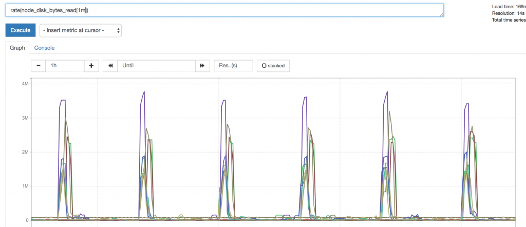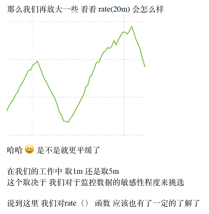 如果想要更灵敏使用irate(): 瞬时增长率,取最后两个数据进行计算,而不是一个小时进行平均数据,不适合做需要分期长期趋势或者在告警规则中使用。