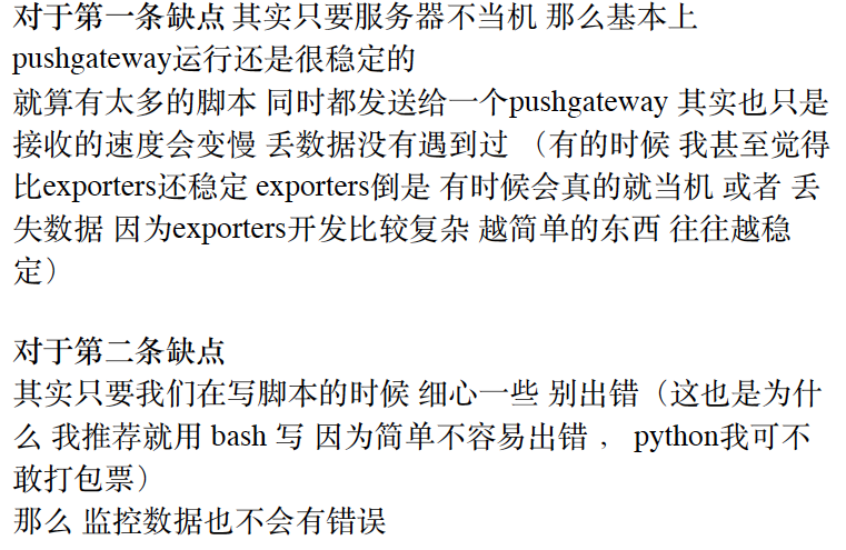 pushgateway虽然灵活 但是 也是存在⼀些短板